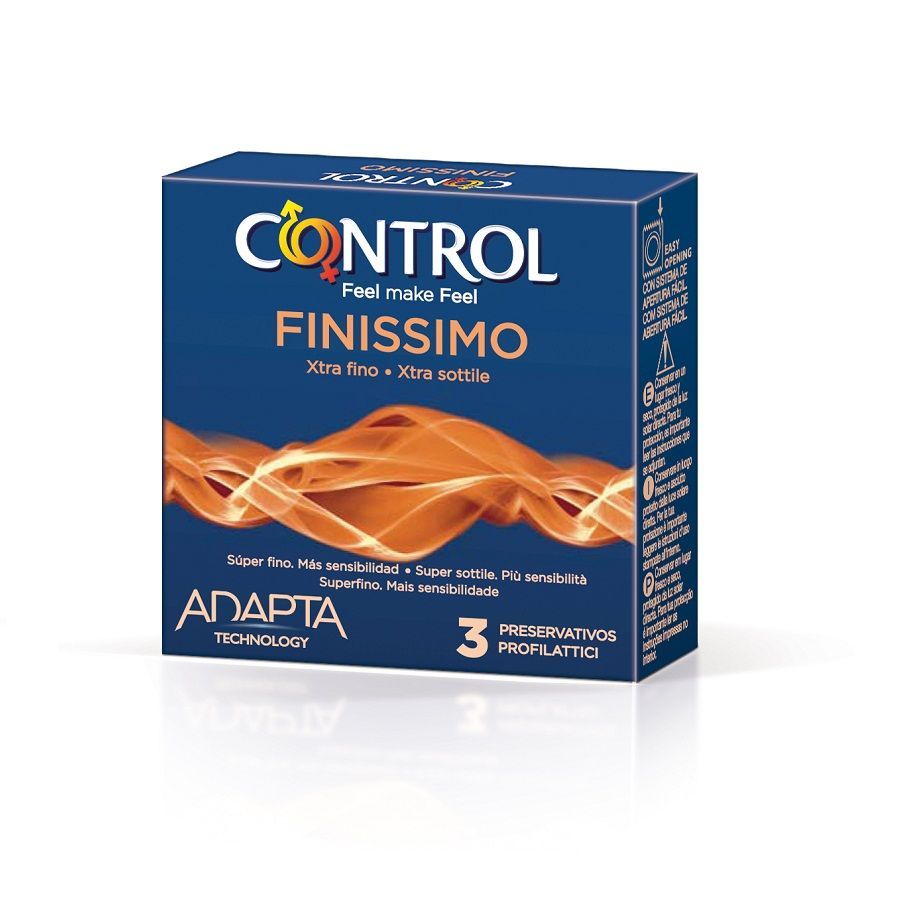 - Control Finissimo: Los preservativos más finos de Control, para disfrutar de una sensibilidad máxima. Trasparentes y lisos .Ancho 54 mm.